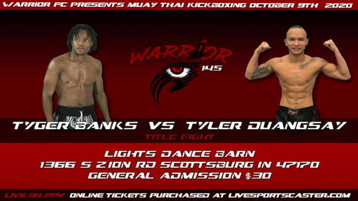 Warrior FC 145 - Muay Thai Kickboxing October 9th, 2020Location: Light's Dance Bar, Scottsburg, Indiana.